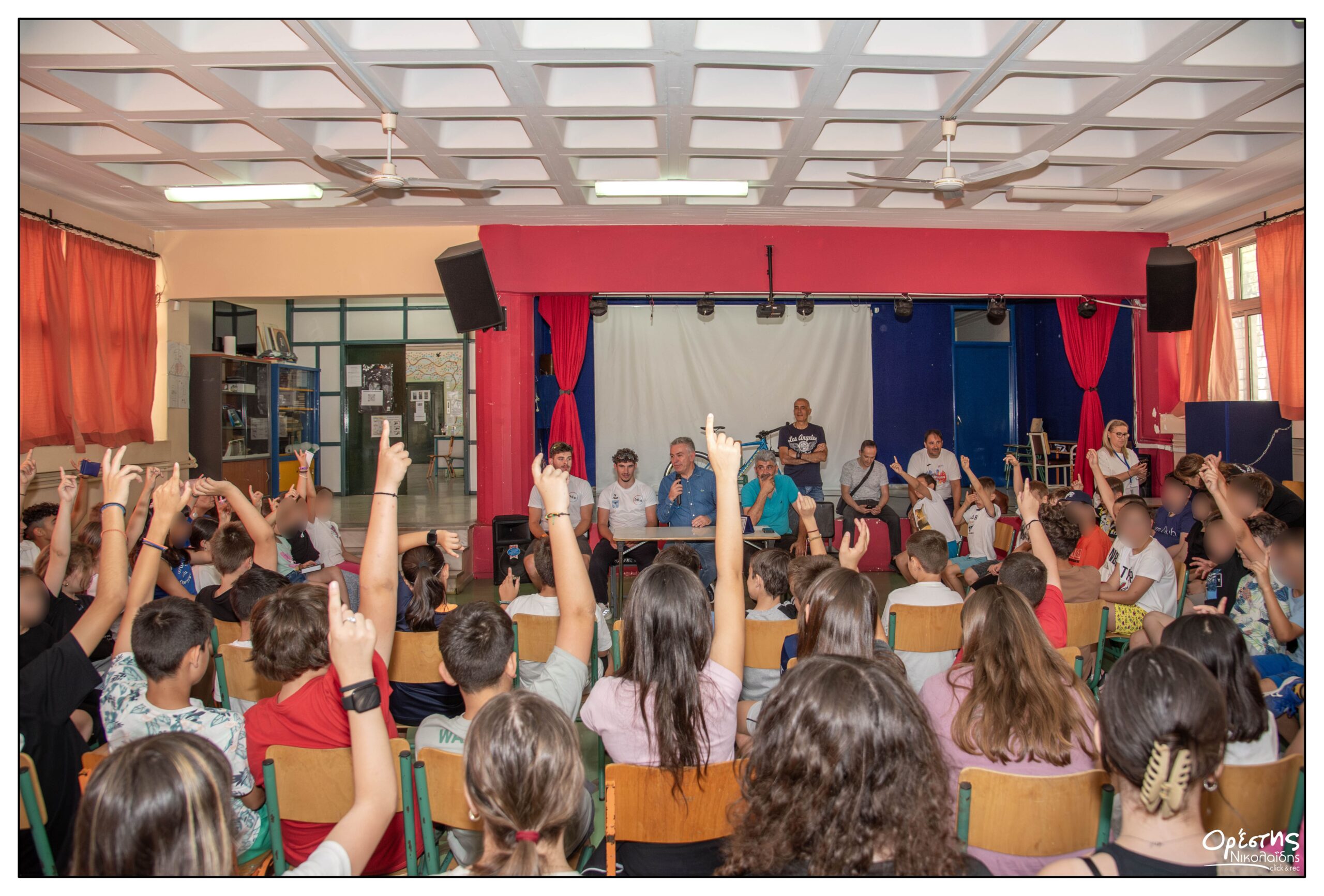 Ο Κωνσταντίνος Λιβανός μαζί με τον Αλέξη Μάγκλαρη 7ο Παγκόσμιο Πρωταθλητή Ποδηλασίας Πίστας, άνοιξαν διάλογο με τους μαθητές, απάντησαν σε ερωτήσεις τους και μίλησαν για τη σημασία της πειθαρχίας, της προσπάθειας και της επιμονής στον αθλητισμό.