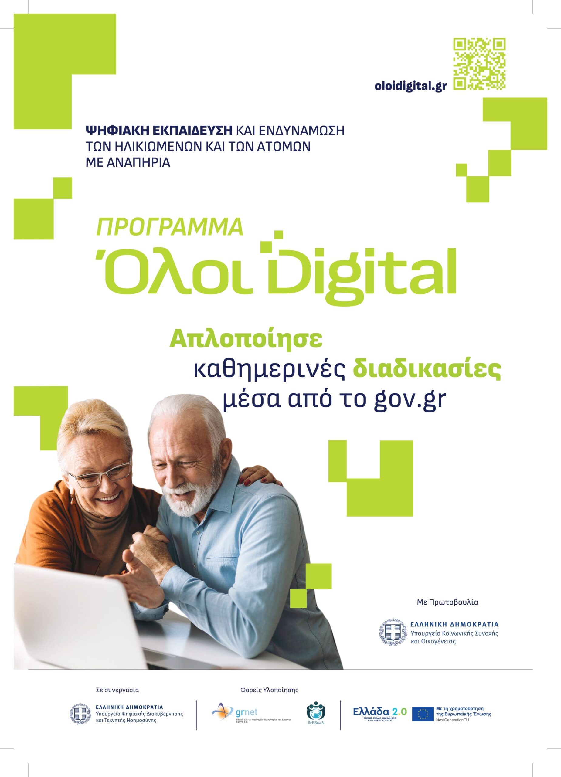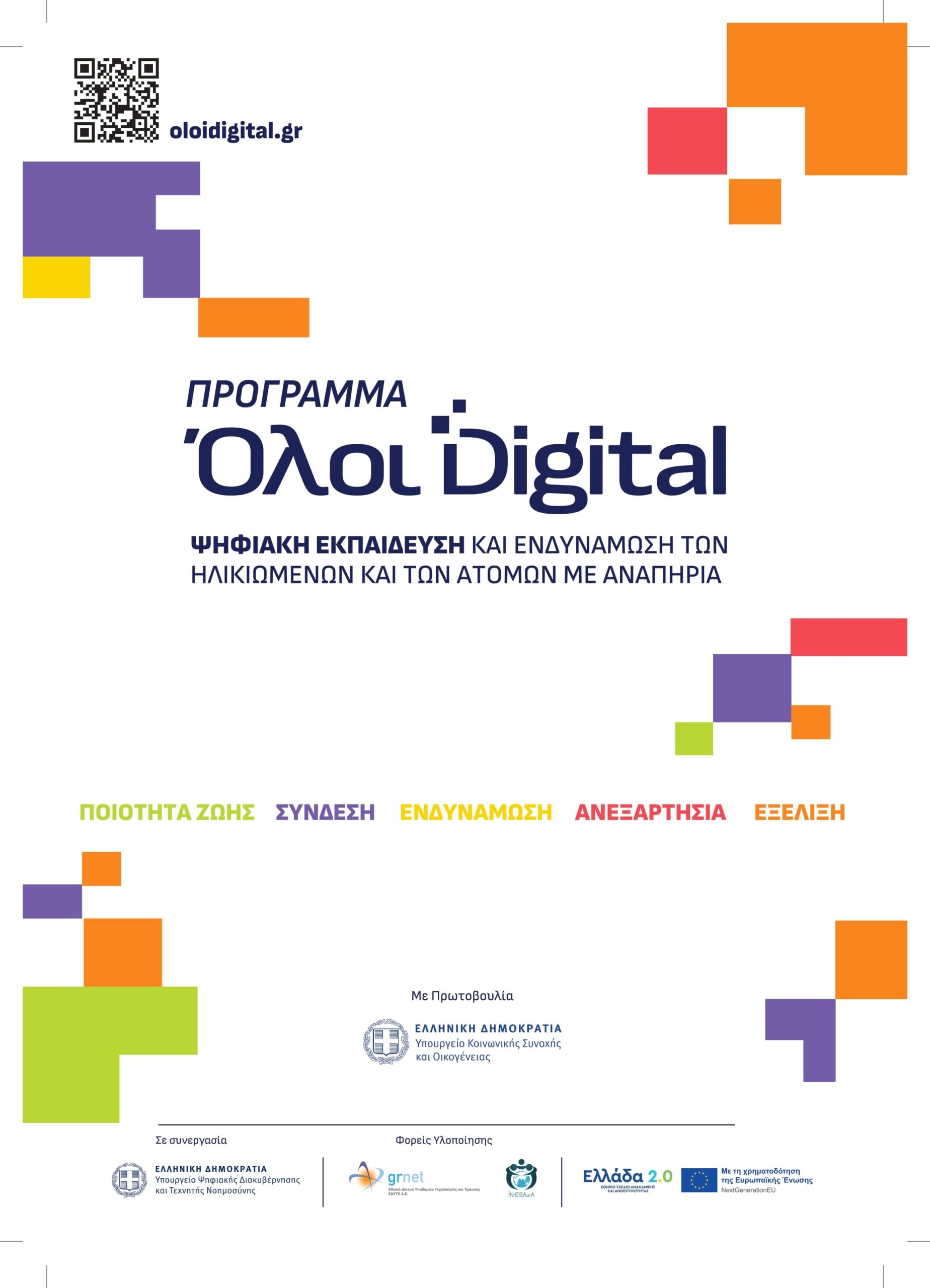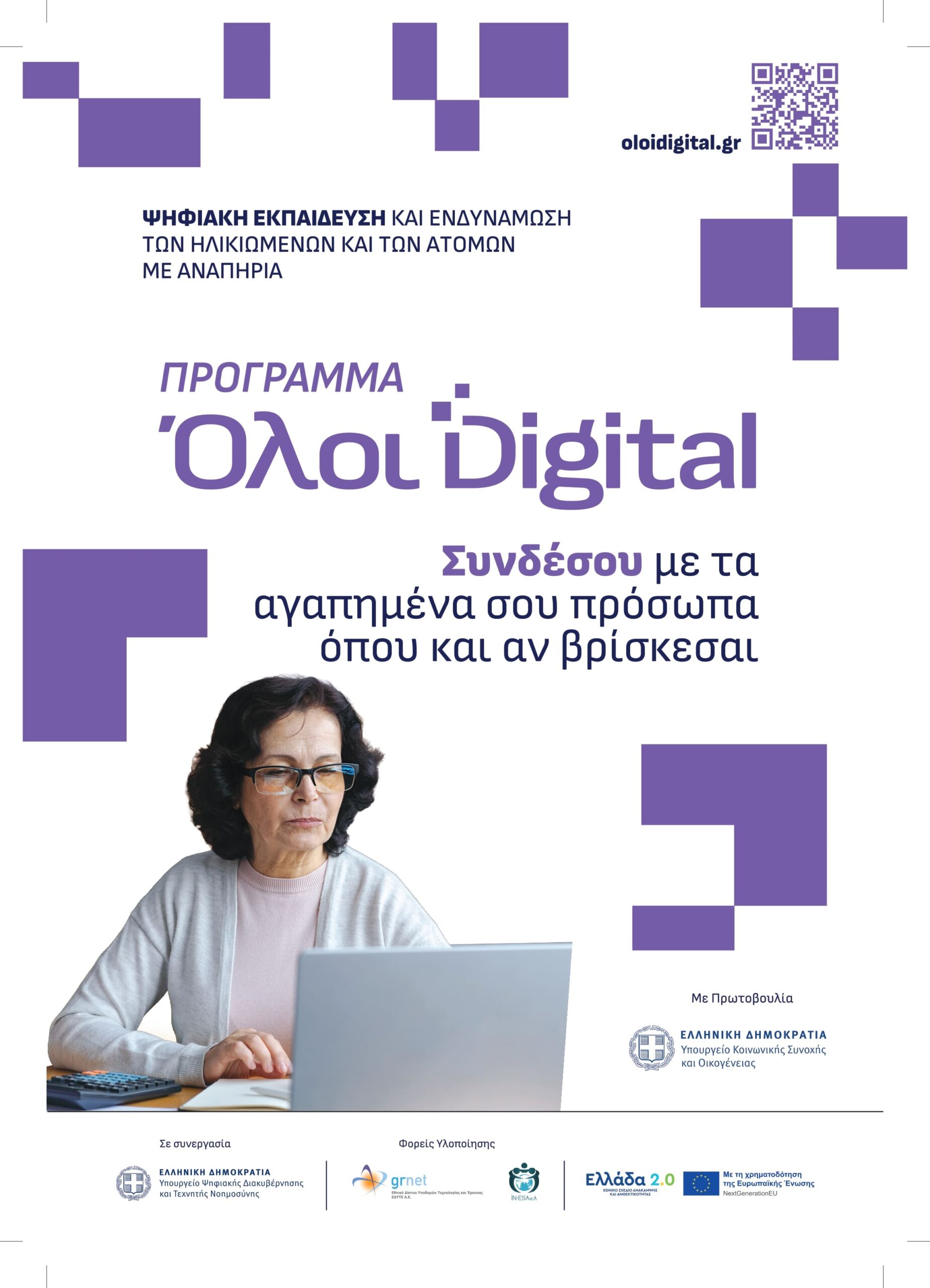 Το πρόγραμμα υλοποιείται στο πλαίσιο συνεργασίας του Υπουργείου Κοινωνικής Συνοχής και Οικογένειας και του Υπουργείου Ψηφιακής Διακυβέρνησης, με πόρους του Ταμείου Ανάκαμψης. Στόχος του προγράμματος είναι η αντιμετώπιση του ψηφιακού αποκλεισμού και η ενδυνάμωση των πολιτών ώστε να